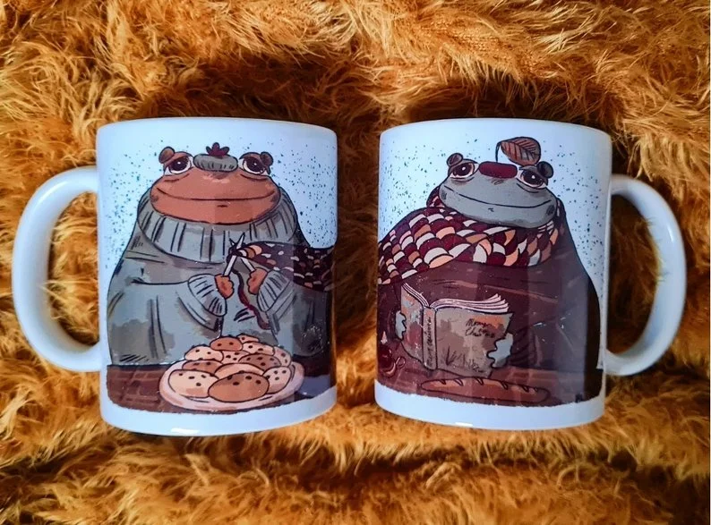 Illustré de deux jolies crapaux cosy et douillets de noël.