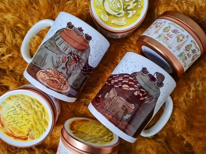 Mug en ceramique 300ml. Illustré de deux jolies crapaux cosy et douillets de noël. Passe au lave-vaisselle et au micro-ondes.