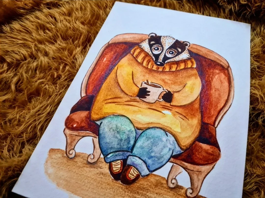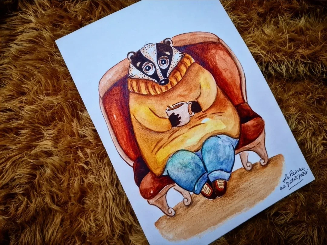 Image 1 sur 2 Image 2 sur 2 Aquarelle originale - blaireau cosy 26,00 € Petite aquarelle originale d’un blaireau cosyA5Original signé Ajouter au panier Ajout effectué ! Petite aquarelle originale d’un blaireau cosyA5Original signé